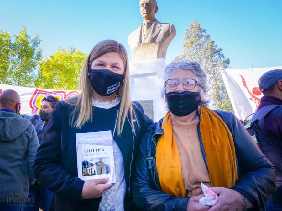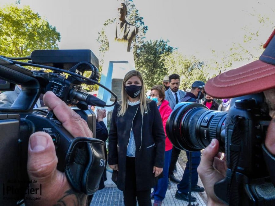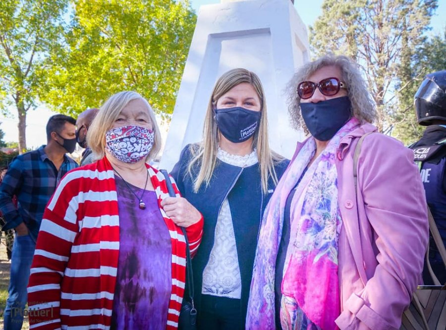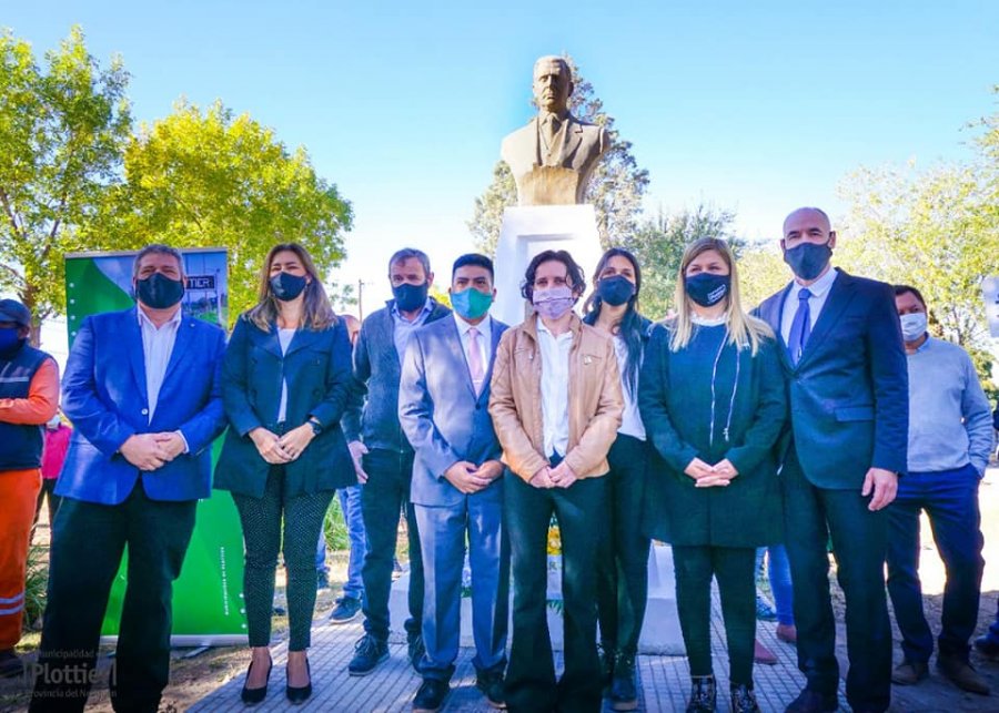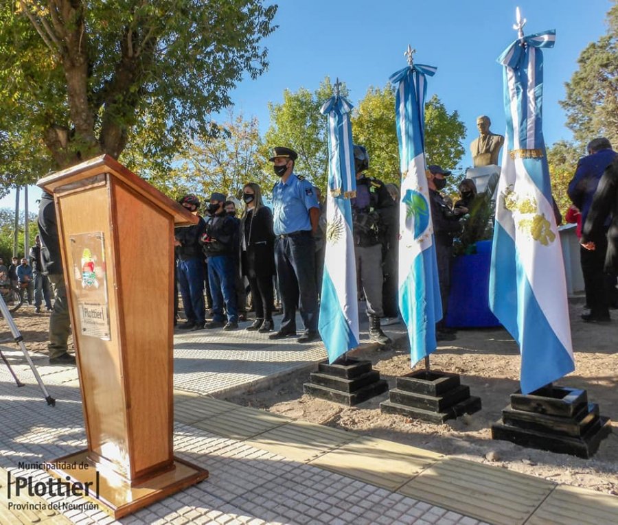 Luego de entonar las estrofas del himno nacional, provincial y la marcha de las Malvinas se realizó una ofrenda floral al busto del Dr. Alberto Plottier, ubicado en la plazoleta Av. Plottier que fue remodelada por el gobierno municipal, con veredas nuevas, modernas y accesibles a los vecinos.